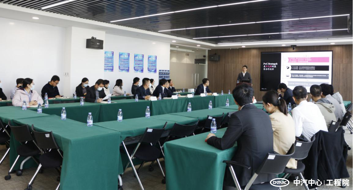 2021年11月15日,普華永道思略特汽車板塊戰(zhàn)略咨詢合伙人蔣逸明、高級(jí)經(jīng)理郝亮一行訪問中汽研(天津)汽車工程研究院有限公司。工程院副總經(jīng)理、黨委委員、總工程師李洪亮、總經(jīng)理助理郝劍虹等接待了普華永道一行,隨后雙方舉行了交流會(huì)議。