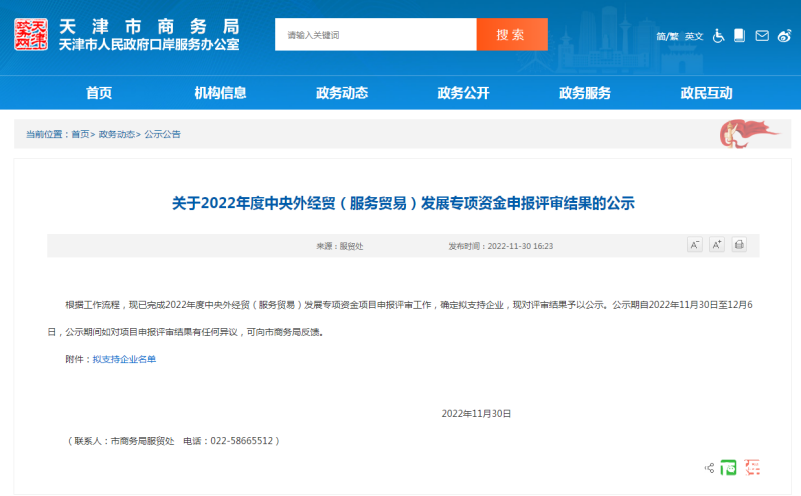 中央外經(jīng)貿(mào)(服務(wù)貿(mào)易)發(fā)展專項(xiàng)資金是天津市商務(wù)局為促進(jìn)服務(wù)貿(mào)易企業(yè)發(fā)展而設(shè)立的專項(xiàng)項(xiàng)目,支持領(lǐng)域包括提供共性技術(shù)支撐、云服務(wù)、檢驗(yàn)檢測、統(tǒng)計(jì)監(jiān)測、信息共享、品牌建設(shè)推廣、人才培養(yǎng)和引進(jìn)、貿(mào)易促進(jìn)、知識(shí)產(chǎn)權(quán)、產(chǎn)業(yè)規(guī)劃、政策研究等。