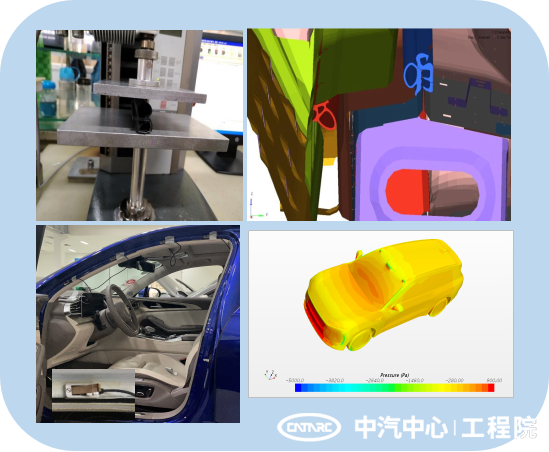 動態密封是影響車內風躁的因素之一,高速風載荷激勵在車門外形成負壓效應,導致車門發生動態變形,進而車門動態密封性能變差、整車風噪惡化,嚴重影響車內乘員的舒適性。動態密封開發團隊于2021年至今已將動態密封技術應用于3個項目中。前期根據數據庫中相似車型的外張量水平,結合密封條隔聲性能測試結果、制造裝配工藝設定密封條的壓縮量目標值。采用密封條材料級測試、部件級測試及標定、參數優化方法表征滿足工程精度要求的材料參數,搭建整車密封條模型,計算車門關閉密封條壓縮量,求解不同工況下的風載荷作為車門動態外張變形分析的輸入,計算動態外張量并對標,對標結果顯示相對誤差在20%以內,考察外張量是否滿足隔聲性能要求,此方法可為原型車階段密封條的隔聲及風噪性能分析提供指導。