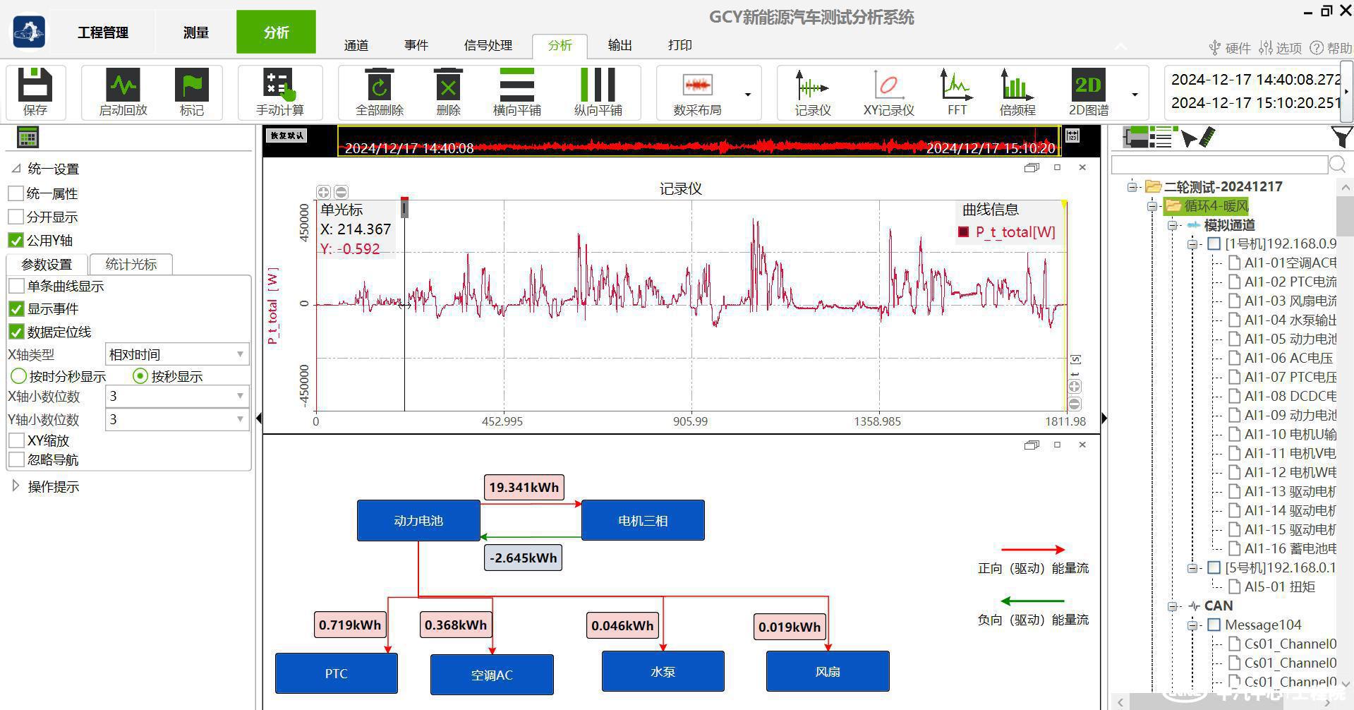 電力組模型基于多參數融合算法,實時解析單相(直流、交流)及多相電(直流、交流)的電壓、電流及功率數據,實現有功、無功、視在功率的精準計算,為新能源汽車功率、能耗分析提供解決方案。