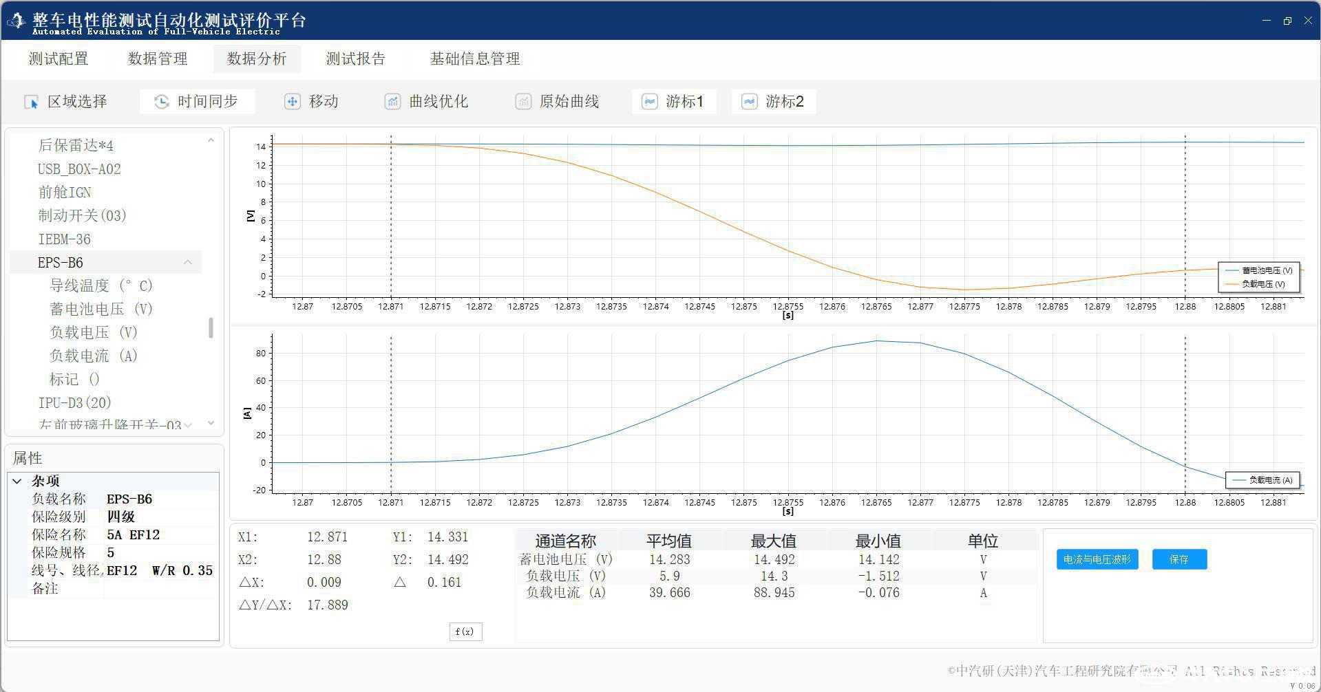 同時針對新能源汽車電性能測試中周期短、測點多、報告多的問題,針對性的開發了電性能測試自動化報告模塊,一鍵生成報告,可縮短驗證周期至少50%。模塊內置短路、過流、單負載、全負載等測試報告模板,支持CSV格式輸入數據,可自定義報告模板及數據分析篩選。同時模塊內置評價準則,可對測試結果的合理性進行判斷,助力工程師快速定位優化方向。