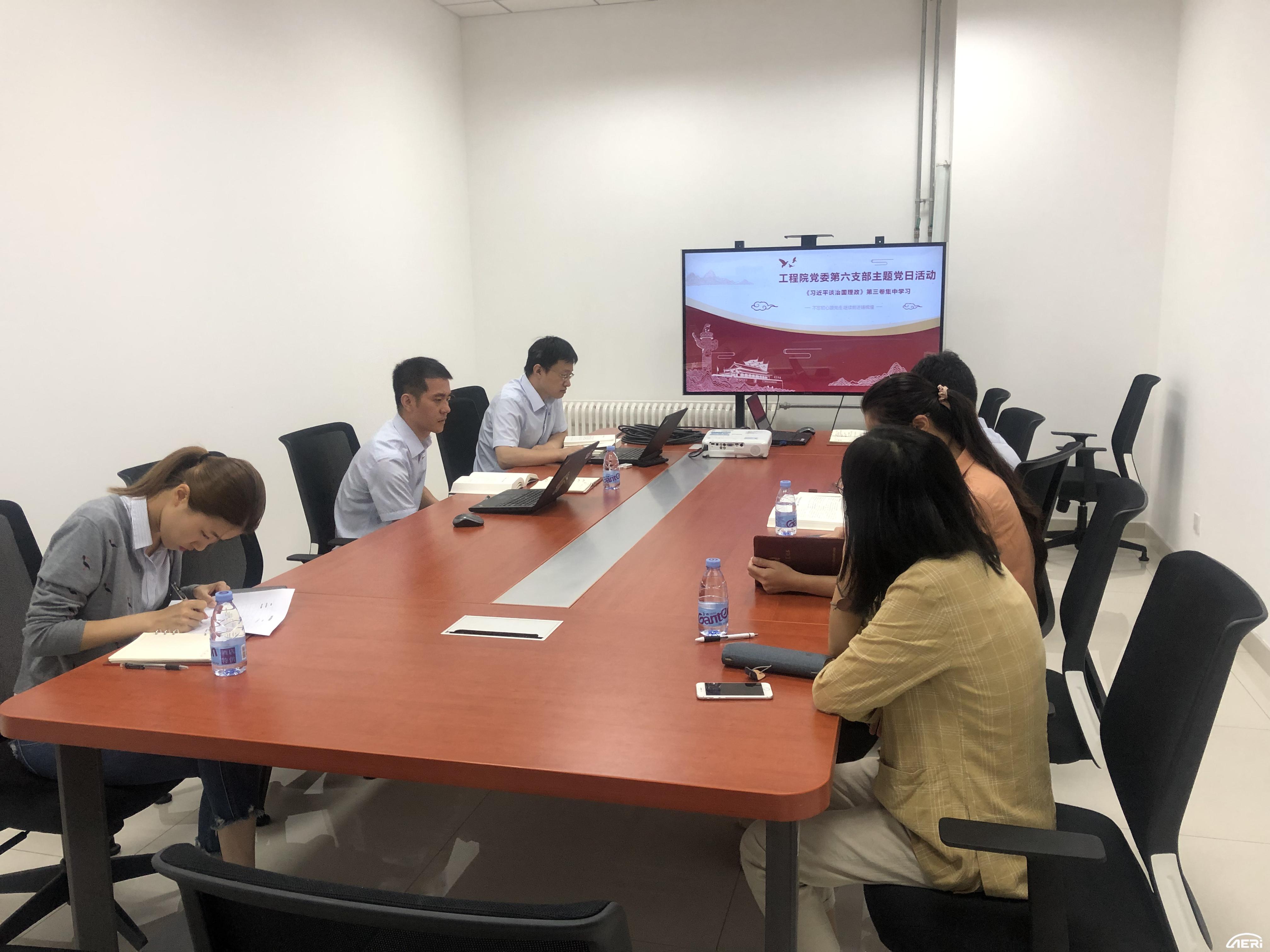 為學習宣傳好《習近平談治國理政》第三卷,深入理解習近平新時代中國特色社會主義思想,2020年8月20日,工程院黨委第六支部組織開展了集中學習《習近平談治國理政》第三卷主題黨日活動?;顒佑芍Р繒浲鹾Q笸局鞒?,第六支部在津黨員、入黨申請人參會。