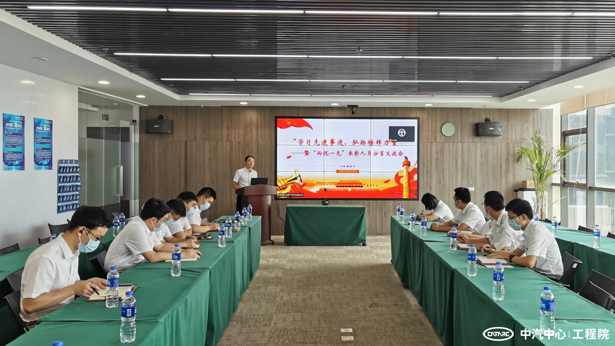 會議開始,由中心及工程院黨委七一表彰的“兩優一先”人物進行事跡介紹和經驗分享。黨支部書記崔東就安全黨支部獲得中汽中心先進基層黨組織發表了感想,總結了支部在黨建經營工作中取得的成果及實效,并表示今后將繼續以黨建工作引領部門經營發展,加強團隊建設,做好專業方向發展規劃,加快業務轉型,為職工辦實事、解難題,帶領全體員工攻堅克難,實現部門高質量經營發展。